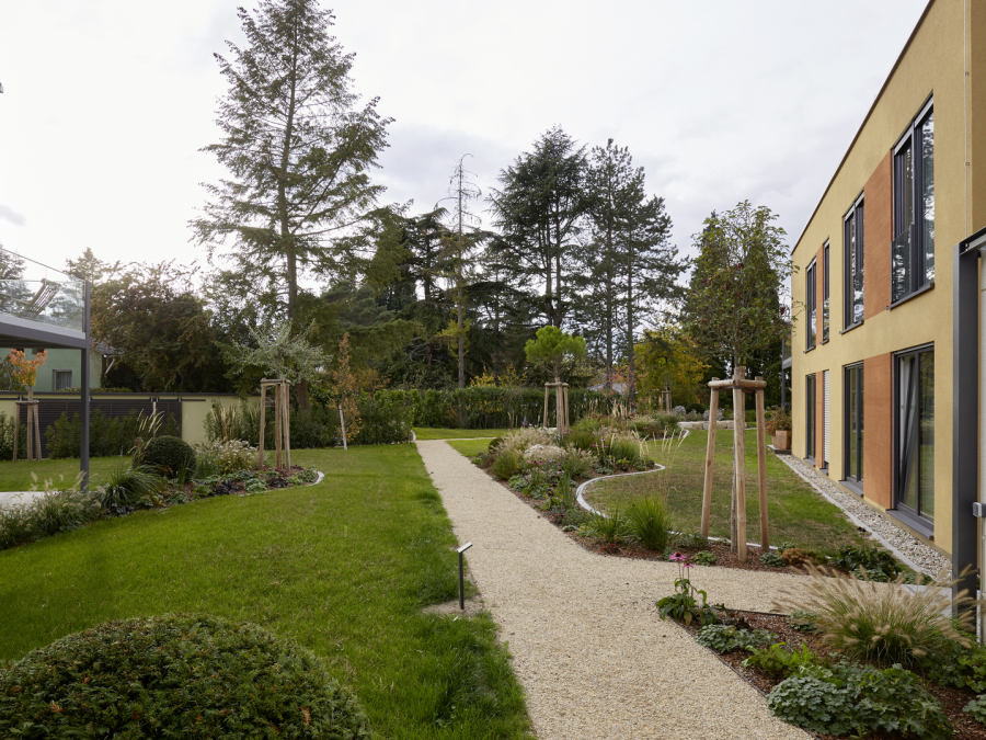 Großzügige Wohnanlage mit parkähnlichem Charakter auf ca. 6.000 m² Fläche mit nur 3 Häusern bebaut.